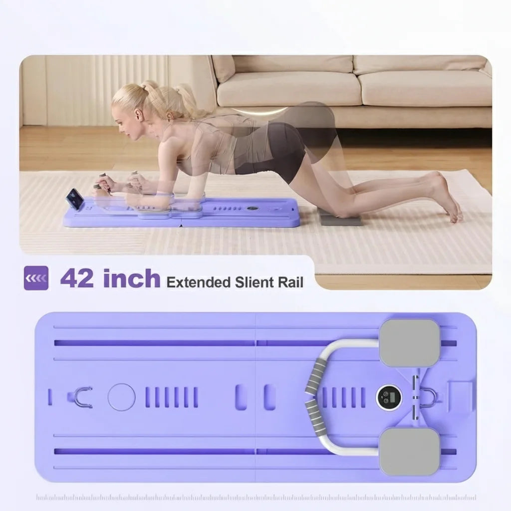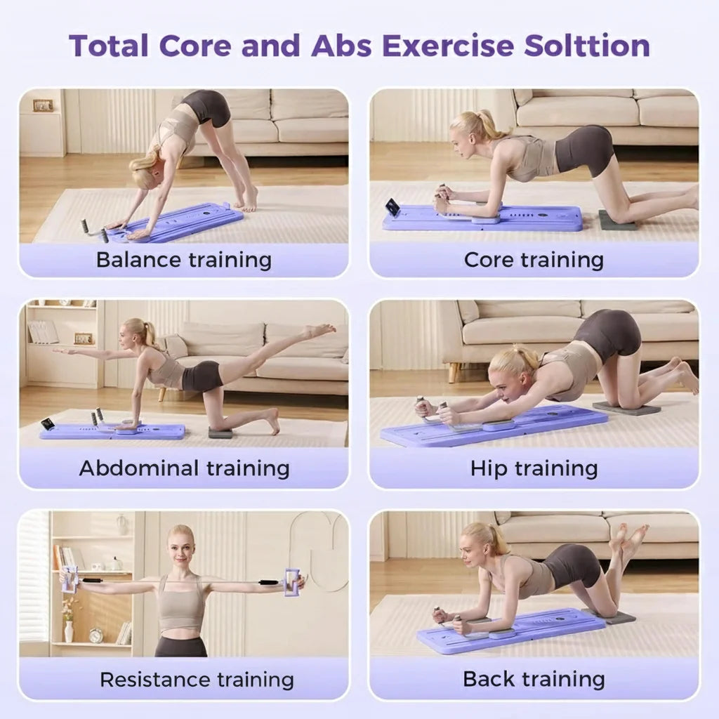 Upgrade your home workouts with this versatile Pilates reformer that combines a reformer system, adjustable resistance board, ab roller, push-up trainer, and balance stabilizer in one compact design. Engage your core, glutes, obliques, and lower back with 50+ exercise variations—ideal for Pilates, strength training, and low-impact rehabilitation.